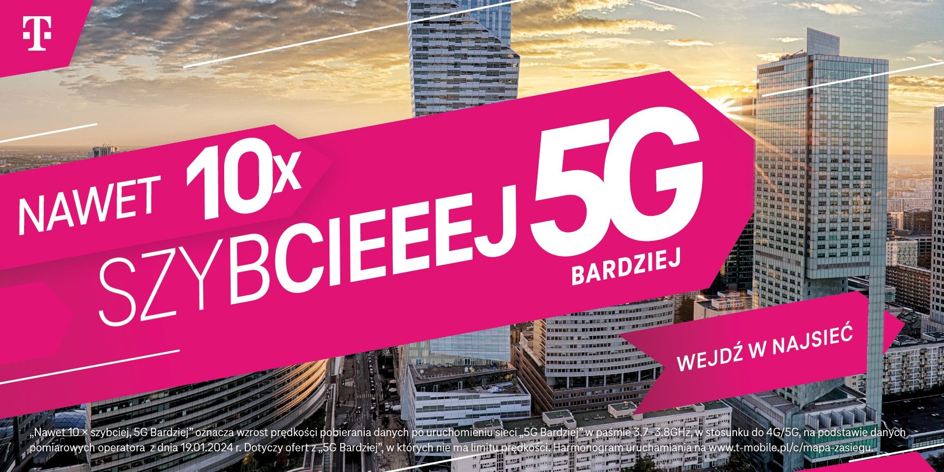 T-Mobile startuje z ofertami w sieci 5G Bardziej. Coraz więcej klientów magentowego operatora może już korzystać z szybkiego internetu mobilnego i cieszyć się z niezawodnej, szybkiej łączności bez zacinania oraz czerpać z nowej technologii pełnymi garściami. Z każdym tygodniem sieć nowej generacji obejmuje coraz więcej miejscowości. T-Mobile zaprasza do testowania nowych usług.