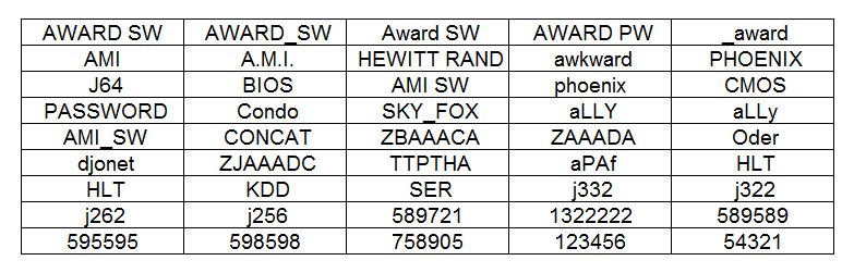 W ostatnim czasie dostałem do naprawy kilka komputerów (zarówno stacjonarnych jak laptopów), w których BIOS był zablokowany hasłem. Oczywiście właściciel hasła nie znał. A było ono mi potrzebne choćby do ustawienia odpowiedniego bootowania. Aby złamać (lub odgadnąć) hasło trza było się trochę nakombinować. Aby zaoszczędzić Wam poszukiwania rozwiązań przedstawiam efekty kilkudniowego przeszukiwania sieci.