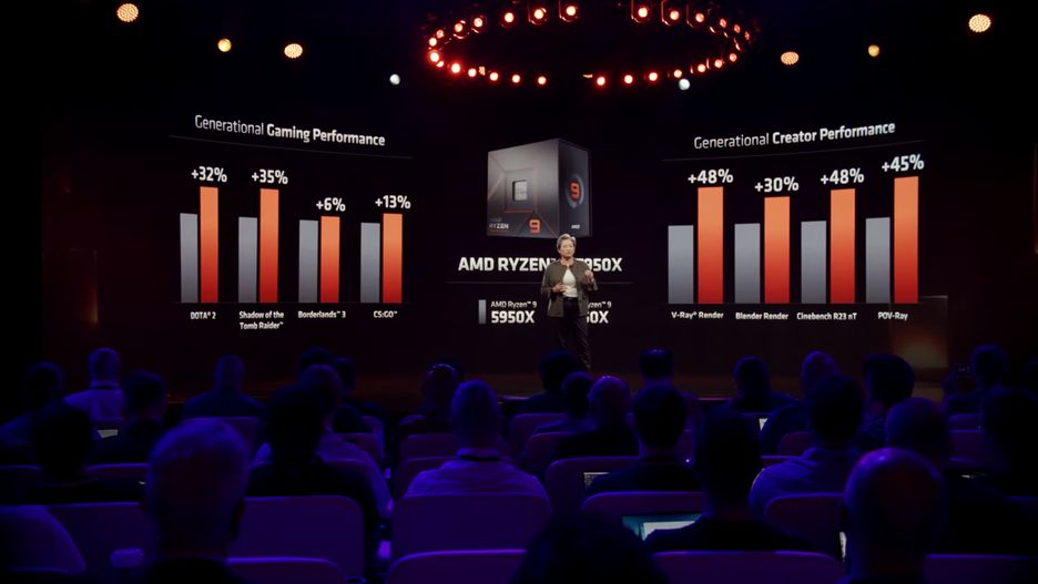 Efektem jest 29-proc. poprawa wydajności jednowątkowej w porównaniu z układami poprzedniej generacji i nawet o 48 proc. wyższa wydajność wielowątkowa w niektórych aplikacjach pokroju np. Cinebench R23 lub V-Ray w stosunku do Ryzena R9 5950X.