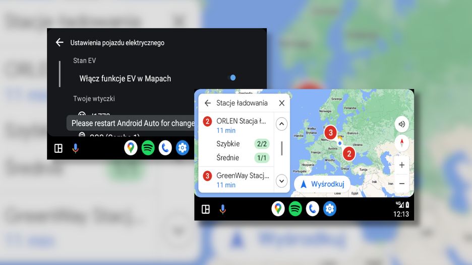W Mapach Google na ekranie w samochodzie wyświetlą się nie tylko nazwy stacji w pobliżu, ale także dodatkowe informacje o ładowaniu, w tym o mocy danej ładowarki. Punkty ładowania funkcjonują w nawigacji na takiej samej zasadzie jak inne punkty POI, więc podczas jazdy można również wyszukiwać tylko takie stacje, które znajdują się wzdłuż zaplanowanej trasy.