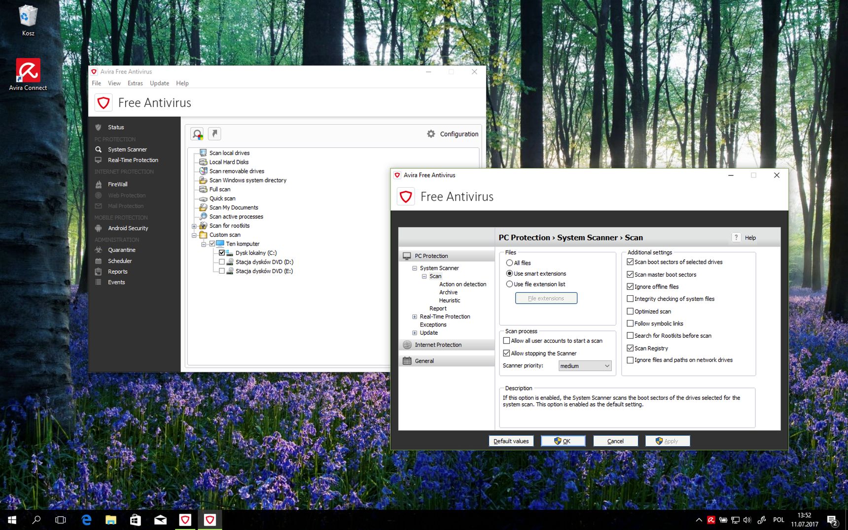Bezpłatny Avira Free Antivirus nie integruje się z klientem poczty, ale po aktywacji skanowania plików podczas odczytu i zapisu informacje w skrzynce pocztowej i tak są sprawdzane.