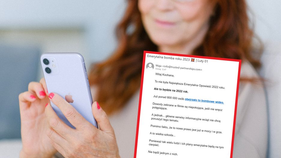 "Emerytalna bomba roku 2023" – brzmi temat wiadomości e-mail, która potencjalnie może trafić do skrzynki każdego Polaka. W jej treści oszuści namawiają do obejrzenia "bombowego wideo", które rzekomo zawiera niepokojące informacje na temat emerytury. W rzeczywistości jest to perfidne oszustwo wymierzone w seniorów.