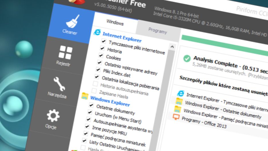 CCleaner, popularny program, służący m.in. do czyszczenia rejestru czy usuwania plików tymczasowych, dziś trafił do nas w najnowszej wersji oznaczonej numerem 5.31.