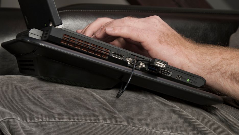 Zasilanie wentylatora rozwiązano za pomocą wtyczki USB. Wpinamy do gniazda w komputerze i tyle. Wentylator się rozkręca i chłodzi naszego pupila. Normalnie pozbylibyśmy się jednego z niewielu złącz USB w naszym notebooku, jednak tutaj producent zadbał o ergonomię. Wtyczka USB jest jednocześnie przelotką USB i możemy z niej korzystać jak z normalnego gniazda. Równie praktycznie przemyślano prowadzenie kabla USB. Od spodu podkładki mamy kanaliki na kabel, z wyjściami po obu stronach urządzenia. Możemy go tak poprowadzić, aby w jak najmniejszym stopniu plątał się na zewnątrz i wokół notebooka. Ostatni interesujący element, który rzuca się w oczy, to miękka wyściółka od spodu. Ma ona dwojakie zastosowanie. Po pierwsze powoduje, że umieszczony laptop na podkładce jest nachylony pod kątem. Dużo wygodniej się wtedy pisze na klawiaturze. Drugie zastosowanie to możliwość ułożenia podkładki z laptopem na kolanach. Wyściółka znacznie polepsza wygodę podczas pracy bez biurka.