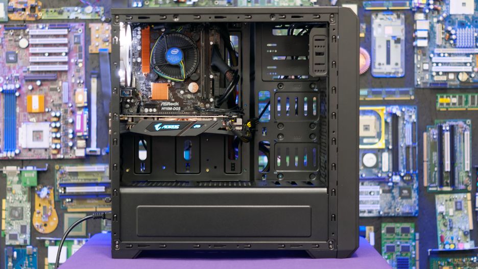 Konfiguracja komputera to oczywiście procesor Intel Pentium G4560, płytę główną ASRock H110M-DGS, 8GB RAM DDR4 w jednej kości, kartę graficzną Gigabyte Aorus RX 570 4GB, zasilacz Cooler Master B400 v2 oraz tania obudowa. W celach prezentacyjnych użyliśmy modelu SilentiumPC Regnum RG2 Pure Black. Do wyboru macie dysk SSD Kingston A400 120GB lub dysk talerzowy Toshiba P300 1TB, których cena jest zbliżona. Po zsumowaniu cena całości wyniosła nieco ponad 2000 złotych.