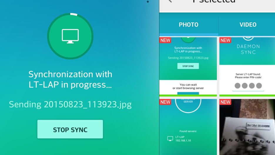 Drugim składnikiem jest oczywiście aplikacja mobilna stworzona z myślą o systemach Android i iOS. Również w tym przypadku zetkniemy się z czytelnym, intuicyjnym interfejsem, który nie powinien sprawiać żadnego problemu. Aplikacja automatycznie wyszykuje serwery uruchomione w sieci lokalnej i pozwala na szybkie połączenie z nimi. Oczywiście, aby było to możliwe, przy pierwszym połączeniu musimy podać kod PIN – właśnie ten, który jest generowany i wyświetlany we wspomnianym już panelu webowym. Po połączeniu aplikacja automatycznie synchronizuje zdjęcia, nagrania wideo i pliki zrzutów obrazu. W ustawieniach możliwe jest wybranie dodatkowych katalogów do synchronizowania, a także okresu, co jaki program będzie wymieniał dane (domyślnie co 15 minut).
