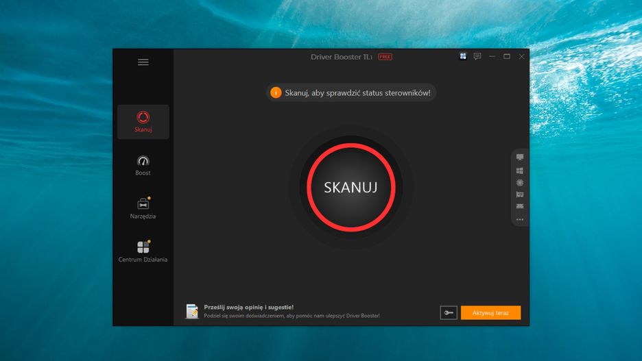 Aby zaktualizować sterowniki urządzeń zamontowanych w komputerze, uruchom program Driver Booster, a następnie kliknij przycisk SKANUJ.