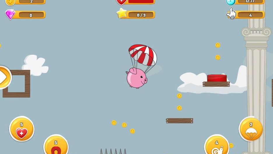 W grze pokierujemy zabawną i sympatyczną świnką, której głównym zadaniem będzie możliwie sprawne i jak najszybsze przedostanie się na drugi koniec każdej z dostępnych plansz. Zwierzakiem kierujemy za pomocą palca pamiętając jednocześnie o jego ograniczonej ilości ruchów w powietrzu.
