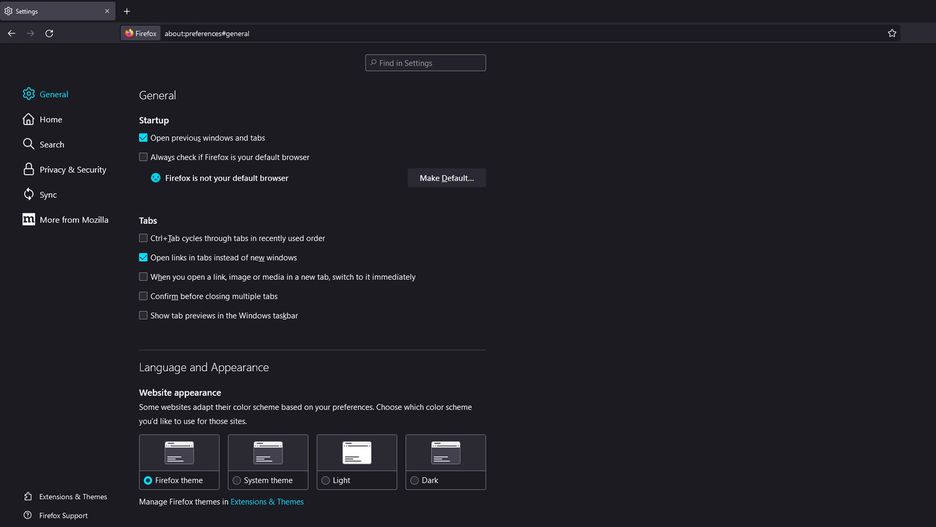 Później klikamy w główne opcje "General" i upewniamy się, że "Open previous windows and tabs" tuż pod "Startup" jest odznaczone.