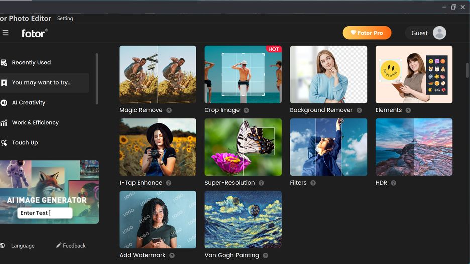 Fotor to darmowe narzędzie do szybkiej edycji zdjęć, które wyróżnia się funkcjonalnością i prostotą obsługi. Dzięki szerokiej gamie narzędzi i filtrów, użytkownicy mogą łatwo osiągnąć spektakularne efekty zaledwie kilkoma kliknięciami. To doskonałe rozwiązanie dla osób poszukujących szybkiej i intuicyjnej aplikacji do obróbki fotografii.