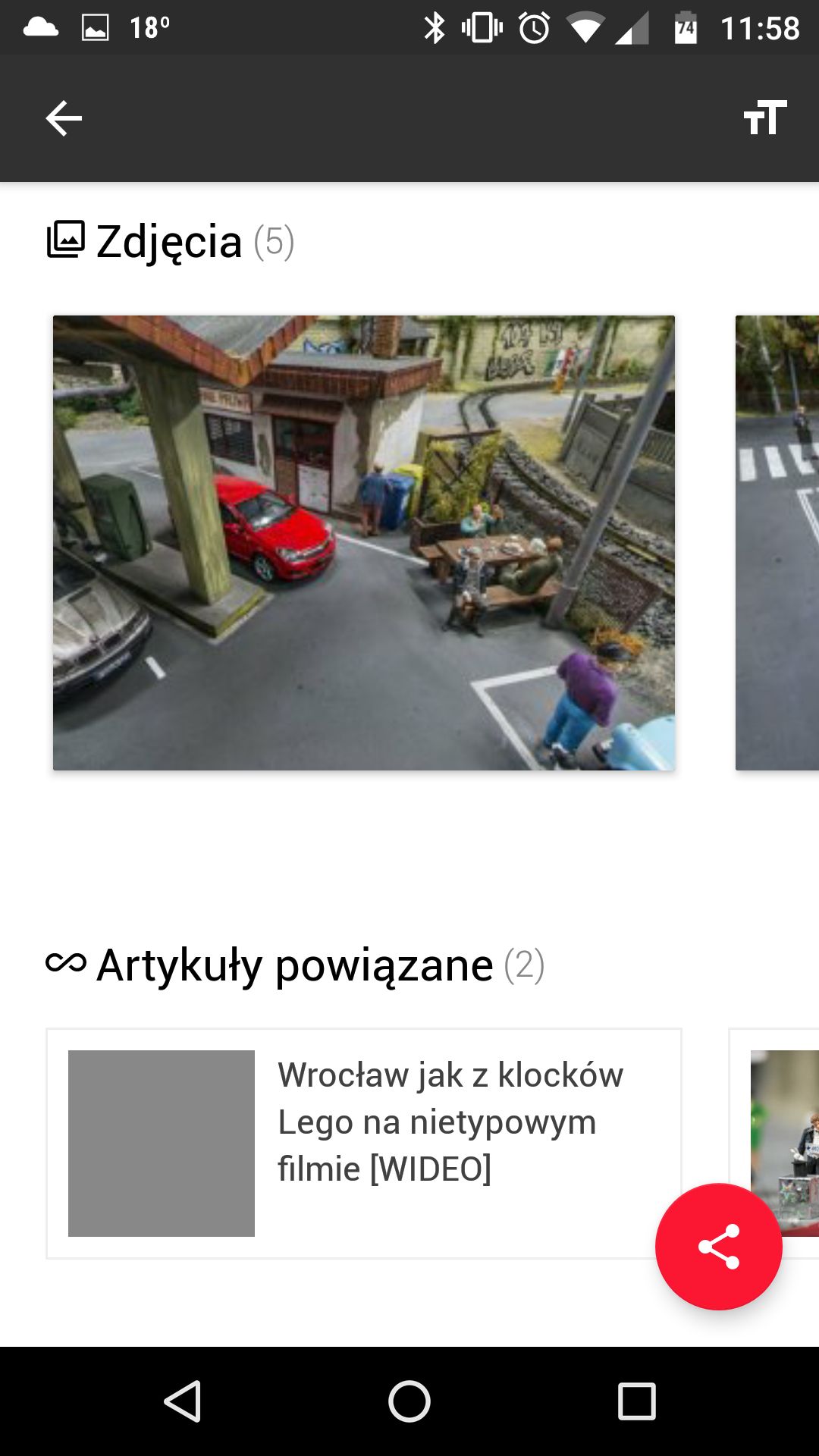 Aplikacja wyświetla treści w formie kart, opatrzonych zdjęciami wysokiej jakości. Treści można wygodnie udostępniać, korzystając z dużego przycisku widocznego w prawym dolnym rogu ekranu.