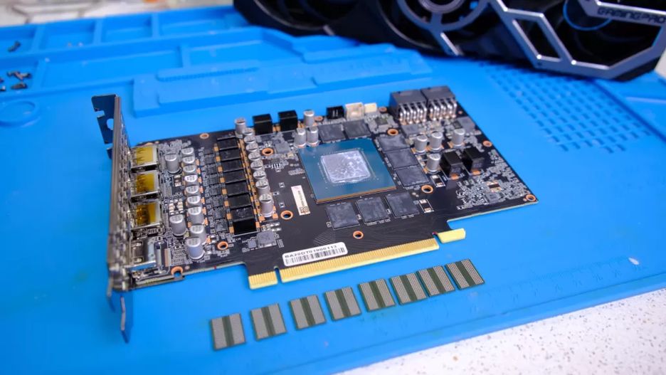 VIK zaczął od zdjęcia chłodzenia karty graficznej. Następnie skorzystał ze stacji lutowniczej i podgrzewał moduły pamięci VRAM do 300 stopni Celsjusza. Dzięki temu lutowane połączenia puściły i mógł bezpiecznie usunąć obecne kości. Następnie podmienił je na moduły o dwukrotnie większej pamięci i ponownie przylutował. To było dość proste, ale później pojawił się większy problem ze zmianą rezystorów.
