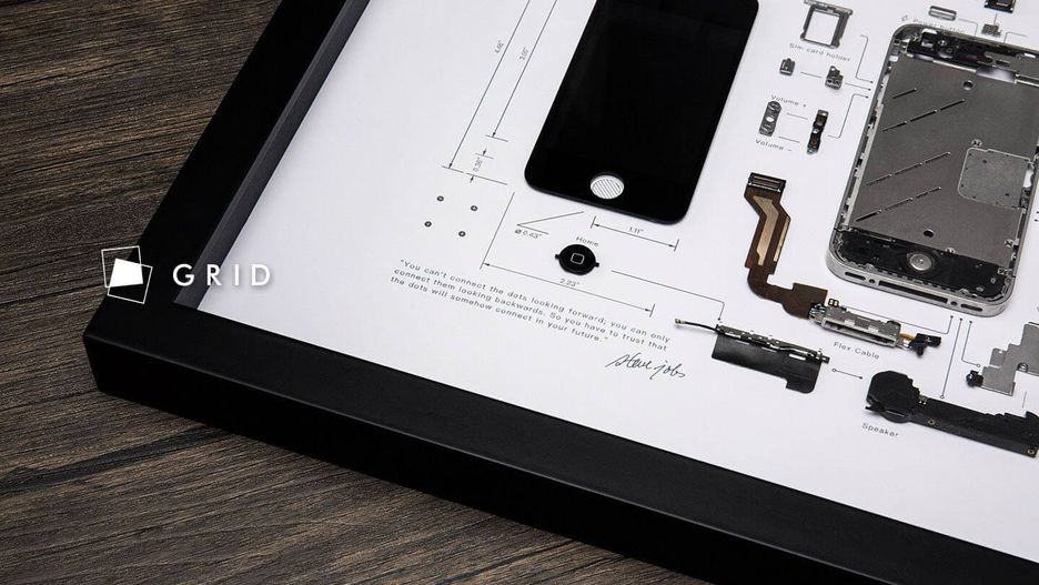 Jeżeli należycie do fanów Apple i zawsze chcieliście powiesić sobie coś związanego z tą firmą na ścianie, to GRID Studio właśnie to umożliwiło. Firma wprowadziła do sprzedaży rozebrane na części produkty Apple oprawione w ramkę.