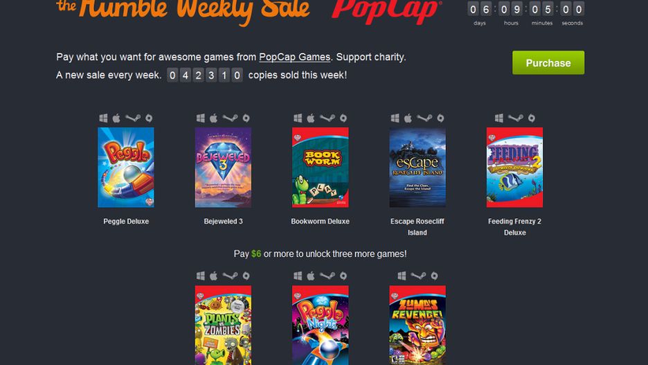 Ponieważ PopCap należy do Electronic Arts, gry otrzymujemy przede wszystkim do pobrania z Origin, chociaż da się je dodać też do biblioteki Steam. W większości przypadków poszczególne produkcje dostępne są również w wersji OS X. Tak jak zawsze, wpłatę dowolnie można rozdzielić między Humble Bundle, wydawcę, a także cele charytatywne. W tym tygodniu wspierane są walczące z rakiem The V Foundation i zajmującemu się badaniami nad czerniakami Melanoma Research Foundation.