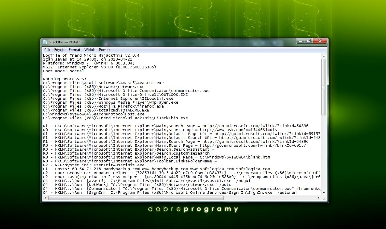 HijackThis rewelacyjny program pozwalający na uporanie się ze złośliwymoprogramowaniem np. podmieniającym stronę startową przeglądarkiinternetowej.