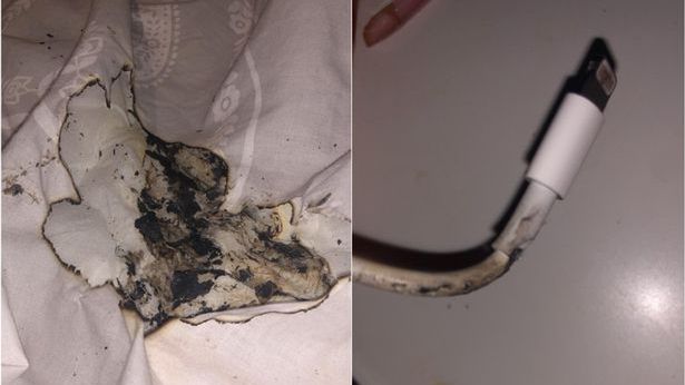Kobiety są zdania, że zawiniła oryginalna ładowarka Apple, ale zdjęcia z miejsca zdarzenia tej teorii nie potwierdzają. Płomień, powstały w zasilaczu, musiałby bowiem przenieść się na kołdrę po izolacji przewodu, przynajmniej na pewnym odcinku niszcząc ją dość równomiernie. Tymczasem największe uszkodzenia widzimy w bezpośrednim sąsiedztwie wtyczki.