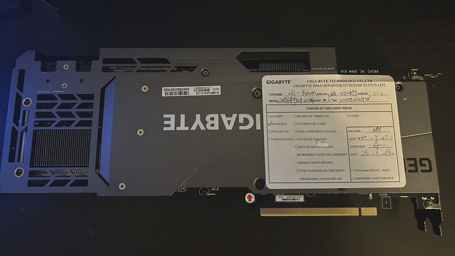 Rossmann sugeruje, że masowe usterki ze złamanym laminatem to wada fabryczna kart graficznych firmy Gigabyte. Co prawda usterkę można naprawić, ale wymaga to fachowej wiedzy i zaawansowanego sprzętu (chodzi o połączenie przerwanych ścieżek w płytce drukowanej).