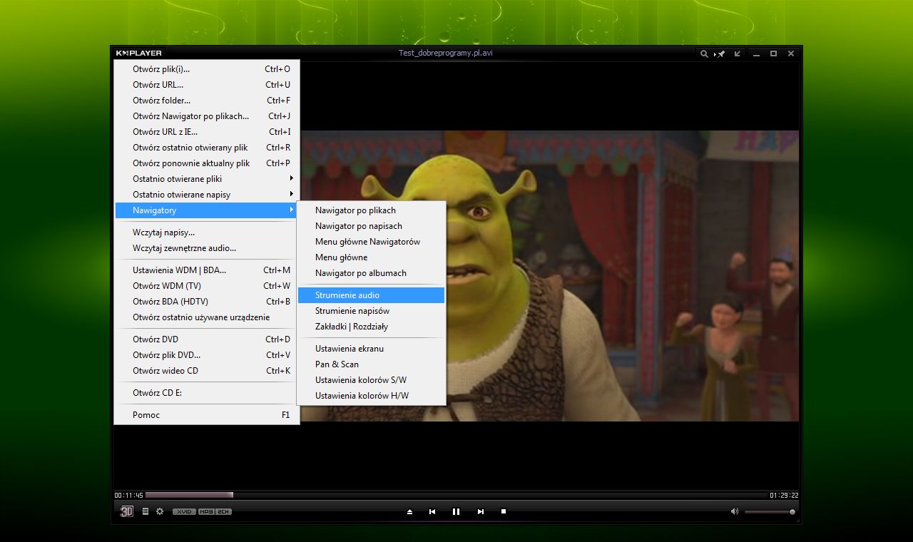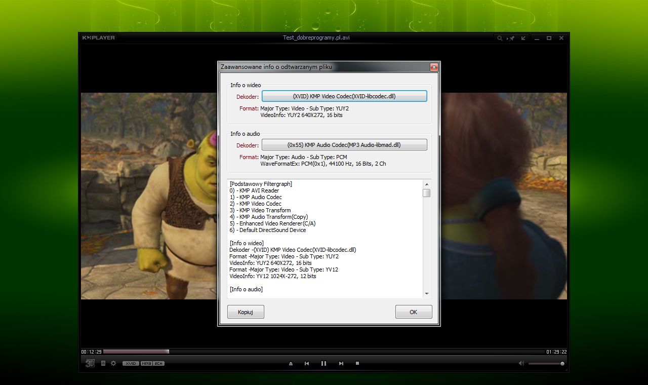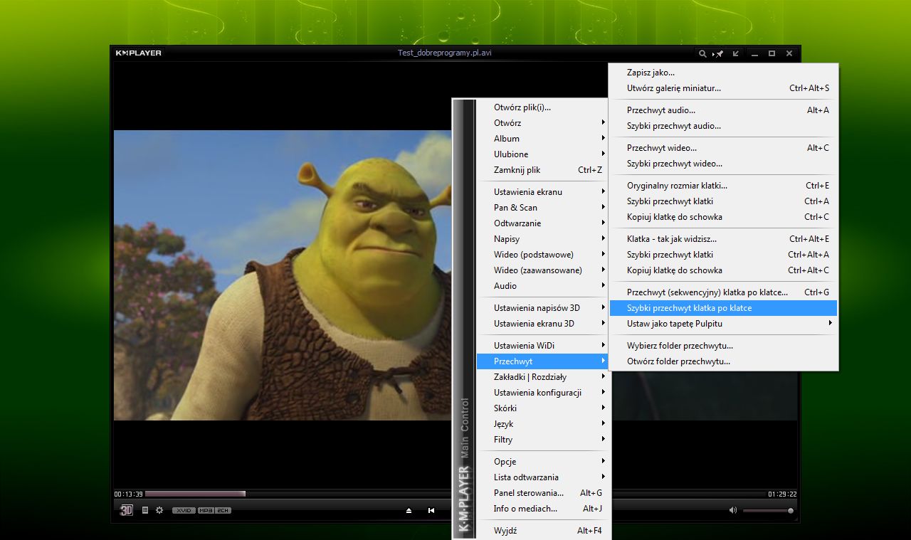 KMPlayer to innowacyjny odtwarzacz plików multimedialnych obsługujący sporą ilość formatów takich jak VCD, DVD, AC3, DTS, AVI, MPEG-1/2/4, WMV, WMA, OGG, RealMedia, QuickTime i wiele innych.