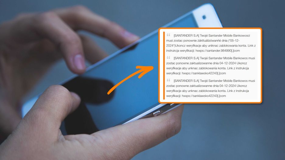 Cechą charakterystyczną wiadomości opisywanych przez CERT Orange są błędy w zapisie i litery z obcych alfabetów. To celowy zabieg oszustów, którzy próbują w ten sposób omijać automatyczne systemy zabezpieczeń działające po stronie operatorów. W przykładzie podawanym przez CERT Orange Polska pojawia się wykorzystana nazwa banku Santander, ale to w praktyce tylko przykład.