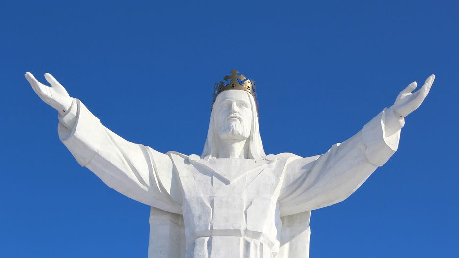 Wzniesiona w Świebodzinie z żelbetu 440-tonowa statua JezusaChrystusa Króla Wszechświata jest prawdopodobnie najwyższą rzeźbąchrześcijańskiego Syna Bożego na świecie – ma 36 metrówwysokości, z czego trzy metry przypadają na pozłacaną koronę.Doliczając do tego 16,5-metrowy kopiec, uzyskamy obiekt ospektakularnej wysokości 52,5 metrów. Jest to przede wszystkimobiekt katolickiego kultu, poświęcony osiem lat temu przez biskupaStefana Regmunta. Jak się jednak okazuje, statua Jezusa ma bardziejprzyziemne zastosowanie. Na głowie statui zamontowano system anten,najprawdopodobniej zapewniających łączność Wi-Fi w okolicy.