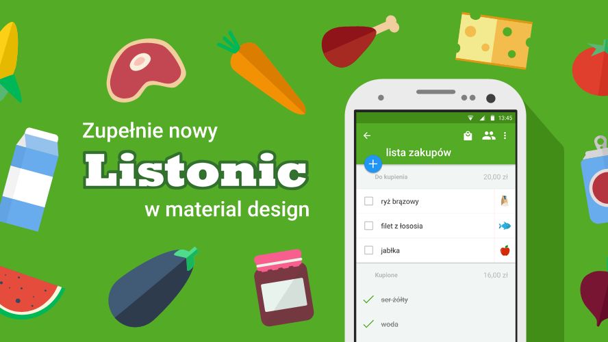 Listonic dla Androida z nowym wyglądem zgodnym z wytycznymi Material Design