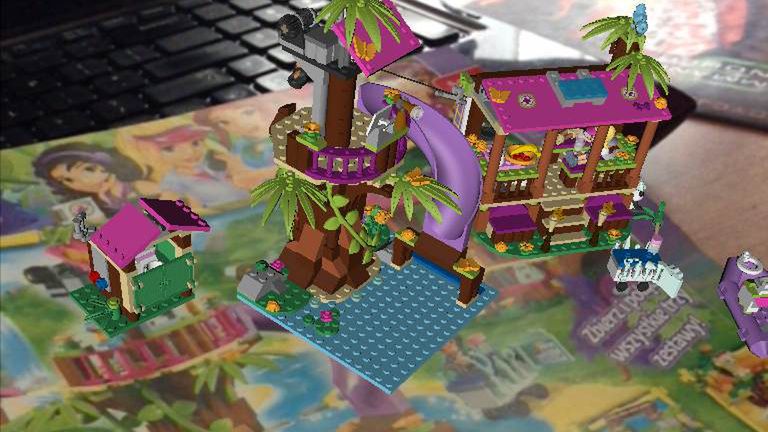 Po pobraniu bezpłatnej aplikacji i uruchomieniu jej na naszym urządzeniu z Androidem czy iOS-em od razu możemy przejść do kartkowania katalogu. Wystarczy przesunąć nasz tablet lub smartfon nad żółty klocek znajdujący się na interesującej nas stronie, by zobaczyć jak dany model ożywa. Twórcy programu postarali się – poza samym umieszczeniem w pełni trójwymiarowych konstrukcji dodali jeszcze efekty specjalne, animacje i dźwięk, dzięki czemu możemy podziwiać jak koparka jedzie po kartce katalogu, dookoła domku chodzi minifigurka, zaś dwie kolejne walczą ze sobą przy pojeździe z Gwiezdnych Wojen. Efektu nie da się w pełni oddać na zdjęciach, możecie go zobaczyć na naszym filmie, jednak najlepiej zobaczyć to na własne oczy.