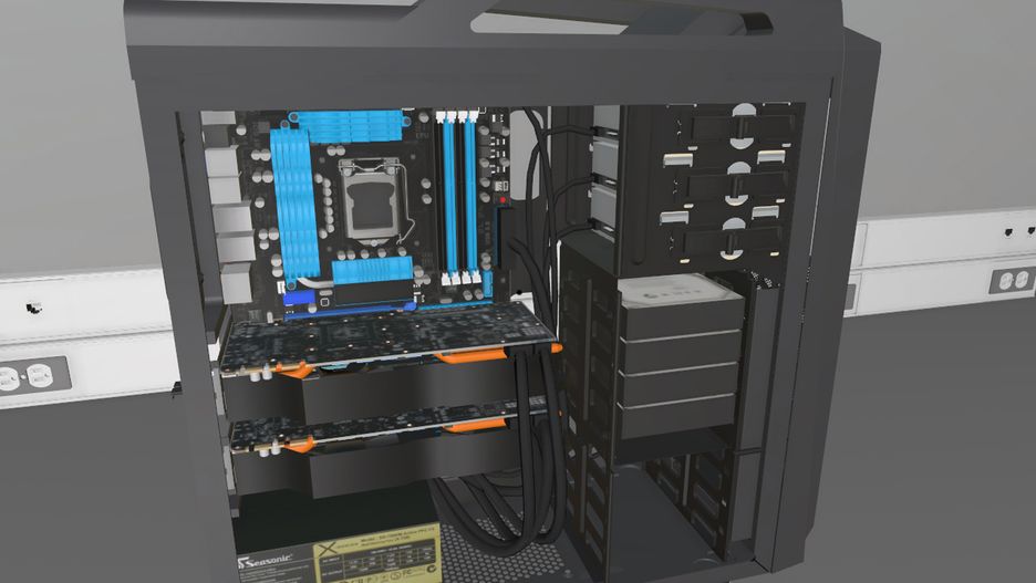 W grze znajdują się precyzyjnie wymierzone modele konkretnych elementów, które można zamontować w PC. Biblioteka jest na razie dość uboga i w niektórych kategoriach nie mamy wielkiego wyboru części, ale trzeba mieć na uwadze, że to dopiero wydanie demonstracyjne. Nie wszystkie konfiguracje będą miały sens, ale na razie nie należy się tym przejmować. Gra jest na wczesnym etapie rozwoju i priorytetem jest dopracowanie jej działania. Wzbogacanie biblioteki elementów to na razie sprawa drugorzędna.
