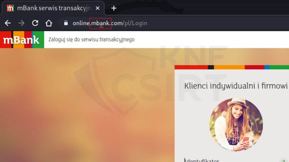 CSIRT KNF ostrzega przed kolejnym oszustwem, w którym cyberprzestępcy podszywają się pod mBank. W swoim misternym planie niemal do perfekcji opanowali pozorowanie oficjalnej strony instytucji. Wystarczyła drobna zmiana jednej litery w adresie.