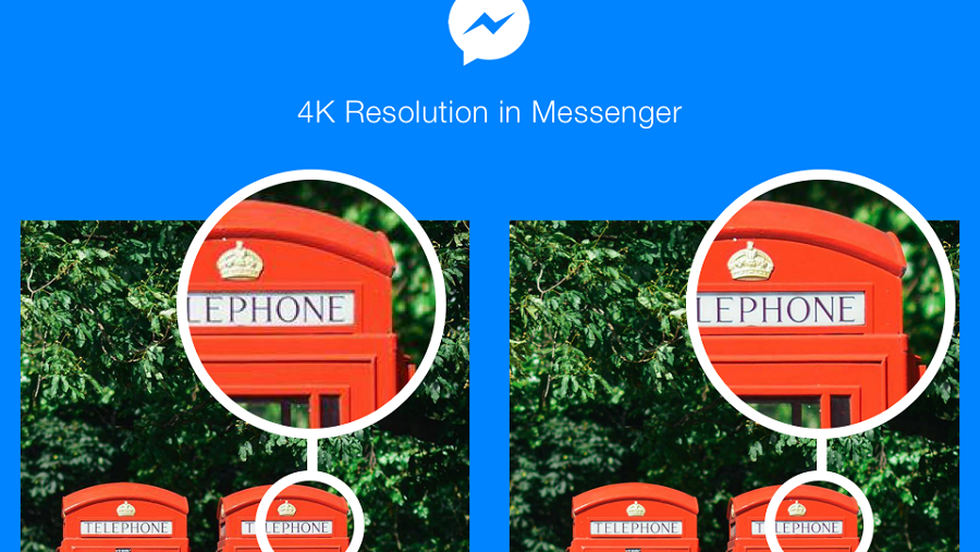 Do tej pory Messenger pozwalał wysłać i odbierać zdjęcia w maksymalnej rozdzielczości 2K, co widoczne było przede wszystkim po przybliżeniu zdjęcia, któremu często brakowało ostrości. Wprowadzone zmiany przyczyniły się do zwiększenia maksymalnej rozdzielczości zdjęcia, które może być przesłane za pośrednictwem Messengera. Obecnie maksymalną wartość ustalono na 4K.