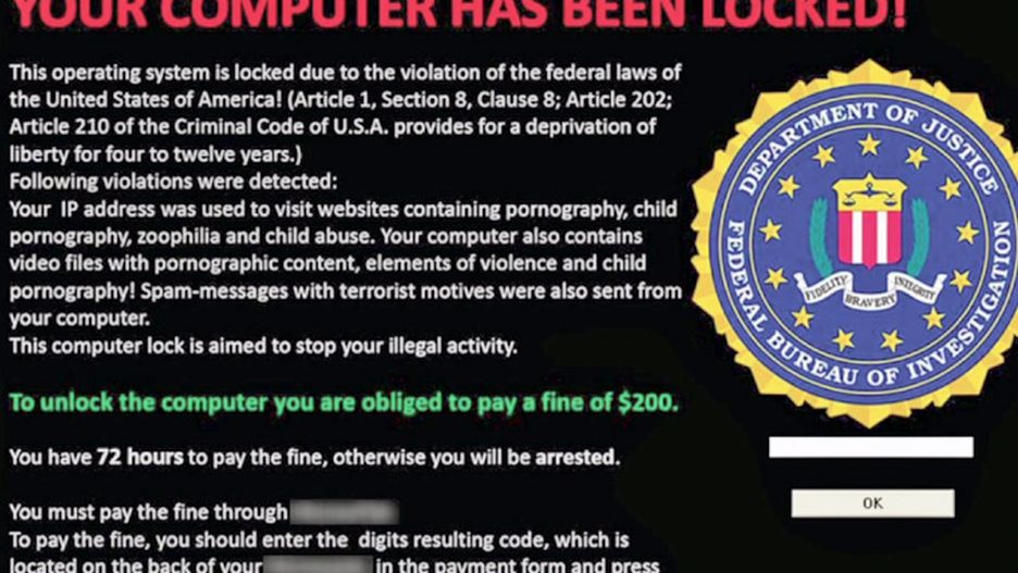 Ten rodzaj oprogramowania bywa „ubierany” w skórkę sugerującą, że polecenie zapłaty wydali stróże prawa, jak lokalna policja czy FBI. Zazwyczaj oczekuje ona wpłacenia kwoty koło 200 dolarów lub euro grzywny za wykroczenie, co umożliwi odblokowanie komputera. W Rumunii kwota ta oscyluje zwykle koło 300 lei, co stanowi równowartość około 280 złotych.