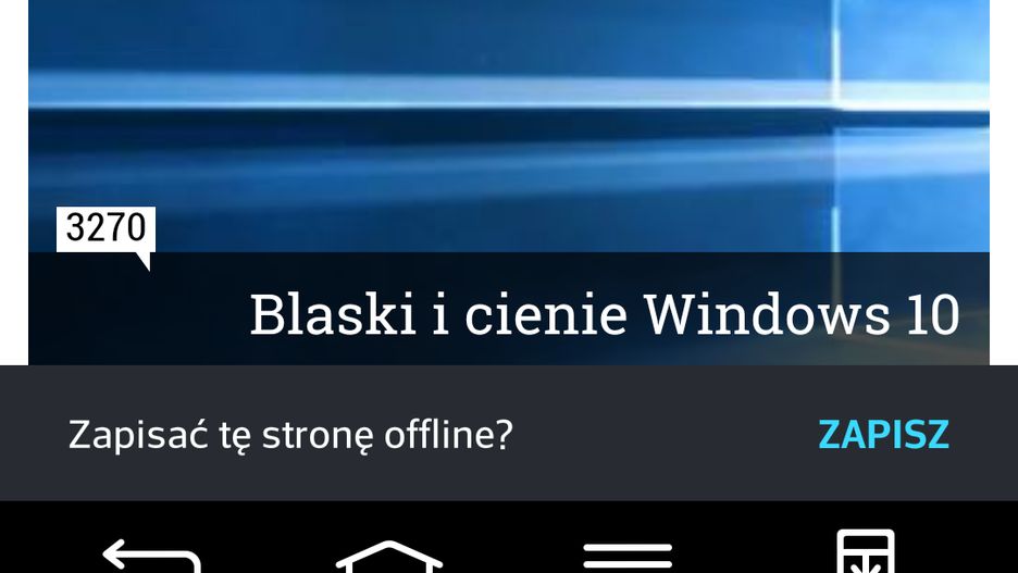 Po ponownym uruchomieniu przeglądarki i odwiedzeniu dowolnej strony zobaczymy nową opcję – przeglądarka zapyta nas o to, czy chcemy zapisać witrynę, aby mieć do niej dostęp w trybie offline. Listę zapisanych witryn znajdziemy w menu, gdzie pojawia się nowa pozycja „Zapisane strony”. Z poziomu tych ustawień możemy edytować zapisane strony, dowiedzieć się ile miejsca zajmują na naszym urządzeniu, a także je usuwać. Jeżeli nagle zostaniemy bez dostępu do Internetu i spróbujemy je odwiedzić, przeglądarka wczyta zapisaną zawartość i poinformuje nas o tym stosownym komunikatem. Z tej opcji możemy skorzystać także na starszych wersjach Androida.