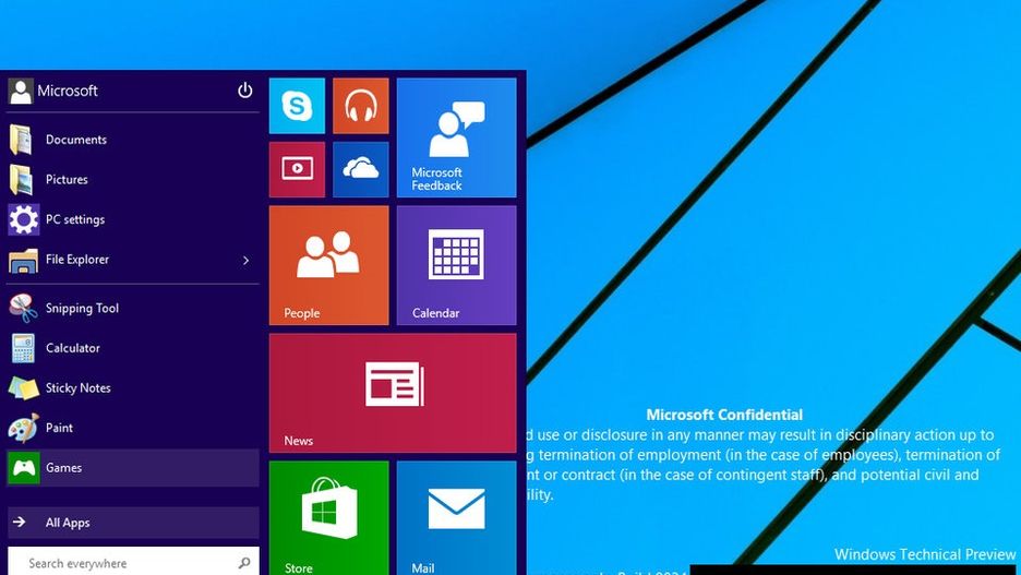 Najbardziej oczekiwanym elementem nowego systemu operacyjnego Microsoftu jest Menu Start, które zostało usunięte wraz z Windows 8. Ten ruch firmy z Redmond wywołał spore kontrowersje i w związku z niezadowoleniem użytkowników, postanowiono przywrócić ten element. Potwierdziły się wcześniejsze przypuszczenia. Odświeżone Menu Start jest jakby połączeniem starszej wersji tego elementu z interfejsem Modern UI. Z poziomu nowego Menu Start mamy dostęp do tradycyjnych, desktopowych programów, a także do aplikacji Modern, które nadal mogą być reprezentowane przez kafelki.