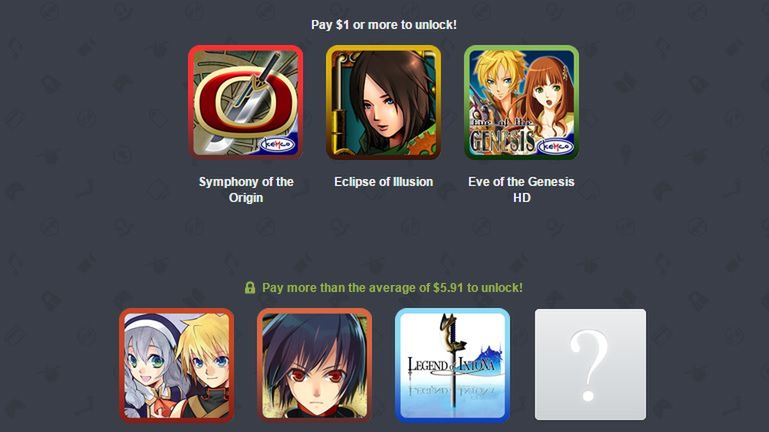 Za minimum dolara otrzymujemy Eve of the Genesis HD, Eclipse of Illusion i Symphony of the Origin. To bardzo dobra oferta, ponieważ normalnie w Google Play za te trzy gry musimy łącznie zapłacić prawie 50 złotych. Natomiast po wpłaceniu więcej niż średnia wpłat dostaniemy jeszcze Silver Nornir, Fortuna Magus oraz Legend of Ixtona.