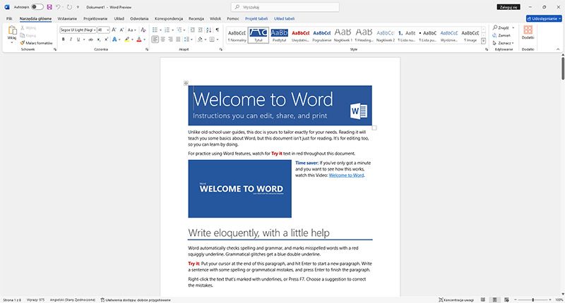 Zaraz po uruchomieniu dowolnej aplikacji wchodzącej w skład pakietu, w oczy rzuca się ujednolicenie interfejsu użytkownika. Rozwinięto tutaj koncepcję Fluent Design, dzięki czemu programy są łatwiejsze w obsłudze i bardziej przystępne dla użytkownika. Dla osób wykorzystujących narzędzia Microsoftu tych nowych rozwiązań jest oczywiście znacznie więcej. Poszczególne aplikacje otrzymały ulepszone ułatwienie dostępu, pozwalające na wygodną pracę nad tekstem, slajdami, czy mailami całej grupie użytkowników.