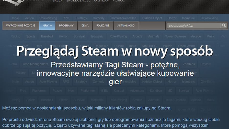 Czasami może być ciężko z odnalezieniem poszukiwanej gry na Steamie. Codziennie pojawiają się nowe, interesujące tytuły, które mogą nie trafić do klientów. Właśnie dlatego Steam uruchomił nowy sposób wyszukiwania gier poprzez tagi.