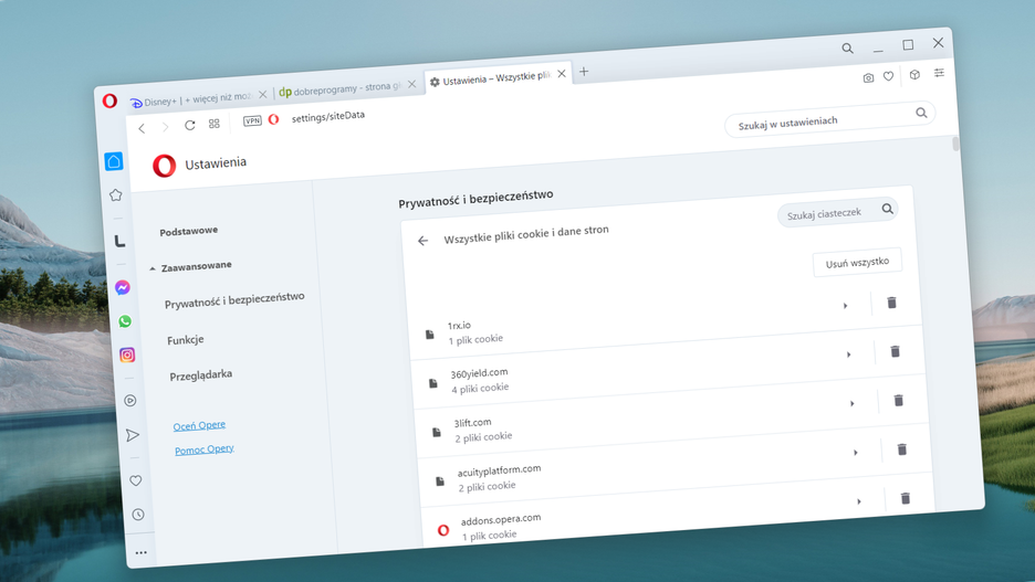 Czyszczenie ciasteczek w przeglądarce Opera może poprawić stabilność działania przeglądarki. Jeśli z jakiegoś powodu strony nie otwierają się lub nie da się zalogować, to właśnie "ciasteczka" mogą być problemem - należy je usunąć.