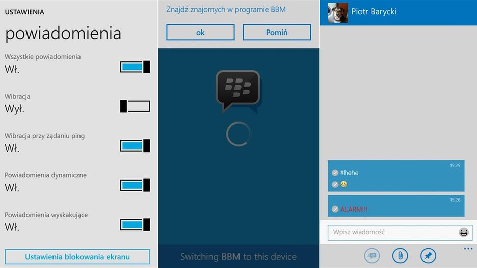 BlackBerry dziś udostępniło swój komunikator użytkownikom mobilnych okienek. Każdy zainteresowany może już pobrać BBM i przetestować działanie aplikacji na urządzeniu z Windows Phone. Obecna wersja jest dostępna na zasadzie otartej bety.