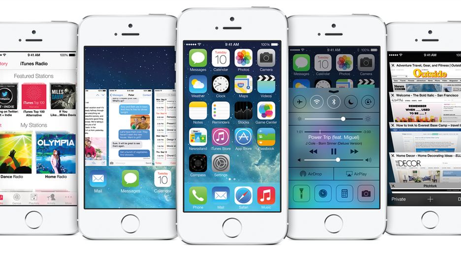 iOS 7 to przede wszystkim nowy wygląd, nawiązujący do rozkwitającej dzisiaj mody na płaski interfejs i odrzucanie niepotrzebnych ozdobników. Widać to już po ekranie startowym i ikonach wbudowanych aplikacji, którym teraz towarzyszą głębsze kolory, cienie i przejścia tonalne. Zmieniono praktycznie cały interfejs systemu, nie oszczędzając nawet flagowych elementów jak gest służący do odblokowania telefonu. Zmianom uległo także przełączanie między aplikacjami, które teraz udostępnia "rzut oka" do środka uruchomionych aplikacji. Wielu bardziej konserwatywnych użytkowników sprzętu Apple było w sporym szoku po zobaczeniu nowego iOSa po raz pierwszy. Prawdopodobnie w związku z tą reakcją firma zdecydowała się w toku prac nieco jednak odpuścić, mimo to efekt z pewnością wywoła ogromne zaskoczenie u tych, którzy jeszcze nie mieli okazji zapoznać się z wcześniejszymi wizualizacjami.