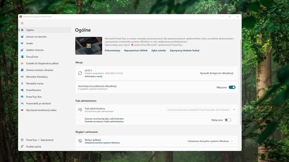 Teraz pojawiła się jednak jeszcze jedna aktualizacja PowerToys. Wersja 0.55.1 to stosunkowo nieduże zmiany, ale istotne dla wygody obsługi. Chodzi o szybkie rozwiązanie kluczowych błędów, które wykryto w wydaniu 0.55. W kilka dni udało się między innymi usunąć problem z niezapamiętywaniem ustawień, a także problem występujący tu nieco wcześniej - kłopoty z automatycznym uruchamianiem PowerToys w trybie administratora. Pełna lista zmian dostępna jest na GitHubie.