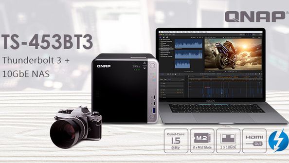 Firma QNAP Systems, Inc. zaprezentowała urządzenie QNAP TS-453BT3 – 4-zatokowego NAS-a ze złączem Thunderbolt 3 oraz preinstalowaną kartę QM2 PCIe, która zapewnia użytkownikom możliwość korzystania z dwóch portów M.2 SATA SSD oraz łączność 10GbE.