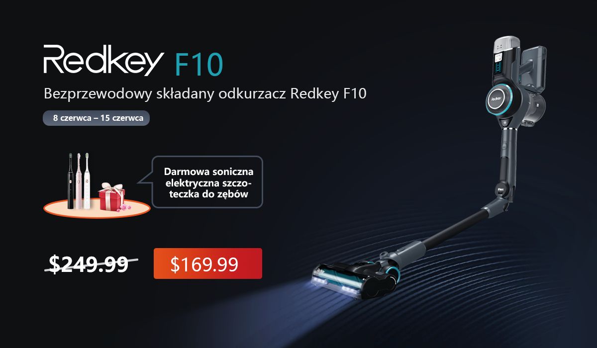 Powyższe powody są całkowicie wystarczające, by wybrać Redkey F10. Ale nie są jedyne. Przez pierwszy tydzień po premierze (08.06), urządzenie dostępne będzie w sprzedaży na eBay i AliExpress w niższej cenie. A nawet cena wyjściowa nie była wysoka, jeśli weźmiemy pod uwagę osiągi i dodatkowe funkcje oferowane przez tę konstrukcję. Oprócz atrakcyjnego rabatu nabywcy mogą również liczyć na upominki w postaci szczoteczek elektrycznych oraz bezprzewodowych głośników. Naprawdę, to najlepszy moment by zmienić odkurzanie z uciążliwego obowiązku w samą przyjemność.