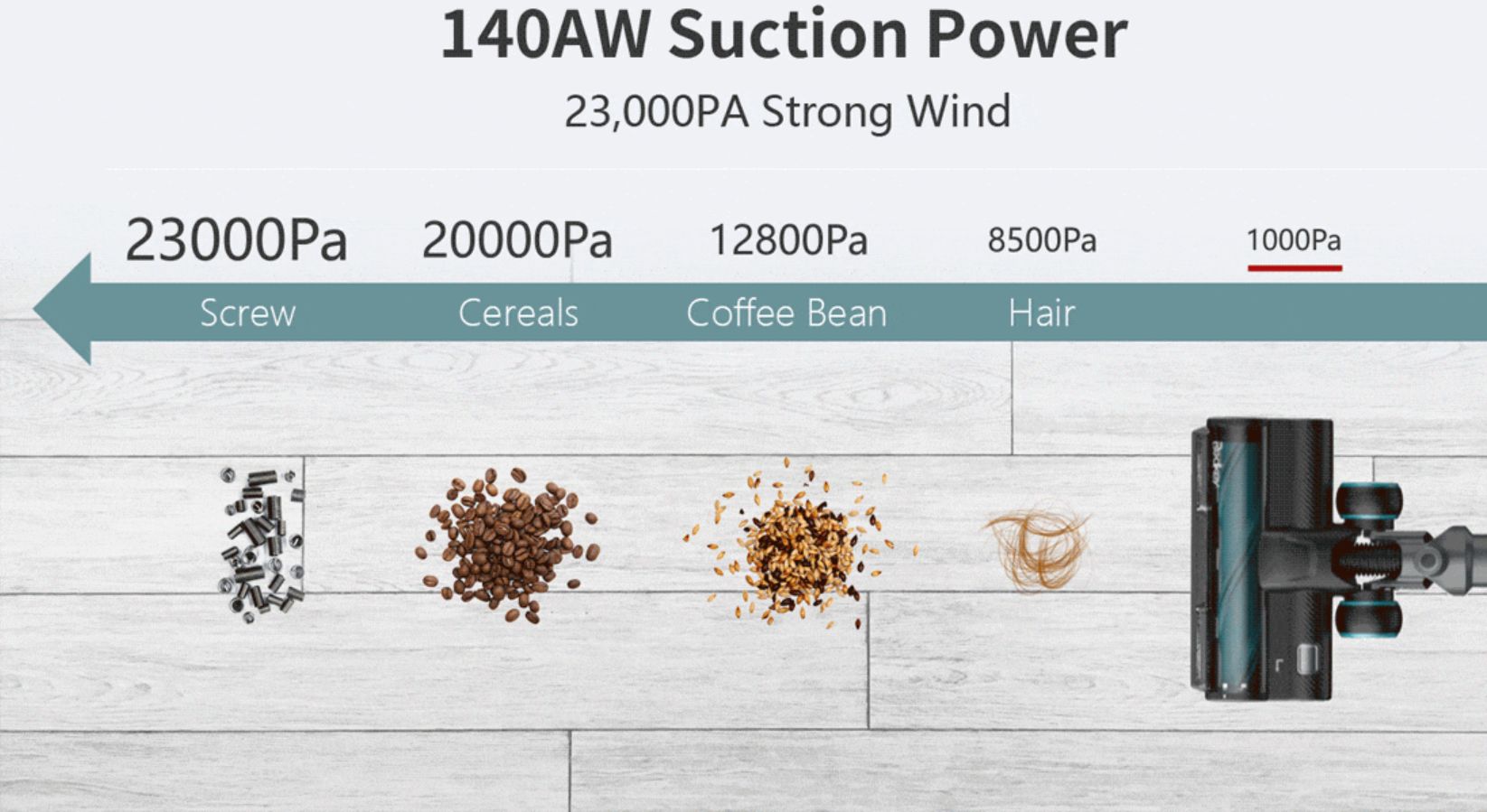 Moc ssąca jest wyjątkowo ważna przy odkurzaniu. Redkey F10 ma jej nadmiar. 400 watowy silnik potrafi wytworzyć podciśnienie w wysokości 23000 Pa. Takiemu ciągowi powietrza nie są w stanie oprzeć się nawet metalowe śrubki i nakrętki. Oczywiście, zwykle to nie one są problemem, lecz inne, dużo lżejsze obiekty. Dlatego właśnie F10 ma pięciostopniową regulację mocy. Ma też opcjonalny inteligentny system rozpoznający ilość i masę brudu, który dostosowuje w locie moc do wyzwania stojącego przed sprzętem. Polowanie na nieczystości z podłogi znacznie ułatwia również specjalne podświetlenie szczotki. Dzięki niemu nie pominiemy żadnego zabrudzenia.