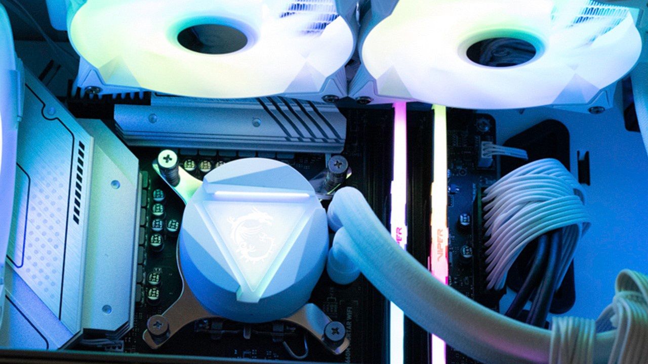Dołączone do procesora Intel Core i5-12400F chłodzenie ma tylko jedno zadanie – chłodzić. Odbywa się to niestety kosztem kultury pracy i takiego scenariusza zapewne tolerować nie będzie wielu z nas. Z tego też powodu warto zainwestować w odpowiednio wydajny i przede wszystkim cichy zestaw, dlatego my postawiliśmy na chłodzenie wodne MSI MAG CORELIQUID 240R V2 WHITE, które znakomicie zaprezentuje się w wybranej przez nas obudowie. Chłodzenie to zagwarantuje procesorowi optymalne warunki do pracy i niskie temperatury niezależnie od poziomu wykorzystania jego mocy.