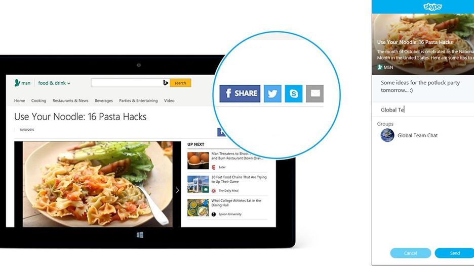 Pod wieloma treściami w sieci możemy znaleźć przyciski szybkiego udostępniania oglądanej treści za pomocą głównie popularnych serwisów społecznościowych. Wystarczy jedno kliknięcie, a treść trafi do naszych znajomych. Podobnego przycisku dorobił się także komunikator Skype.