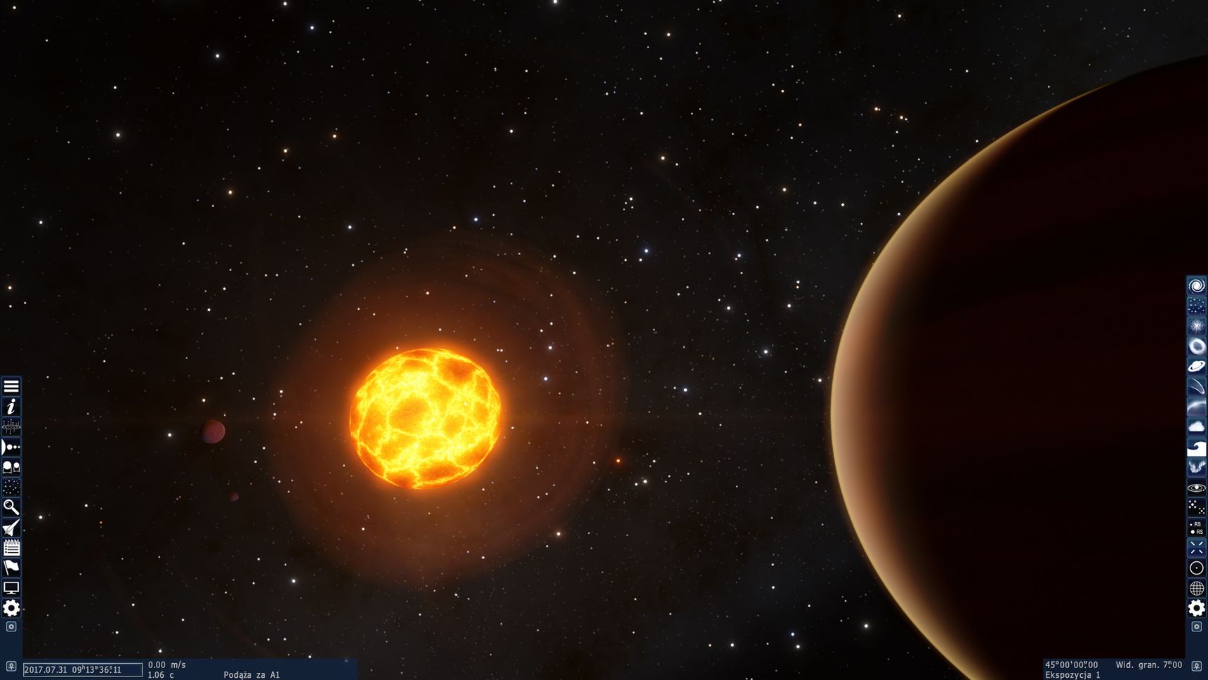 W czasie rzeczywistym są obliczane ruchy obiektów po orbitach i cienie, a mgławice można oglądać w postaci wolumetrycznych modeli. Dla Ziemi opracowany został ponadto model atmosfery.