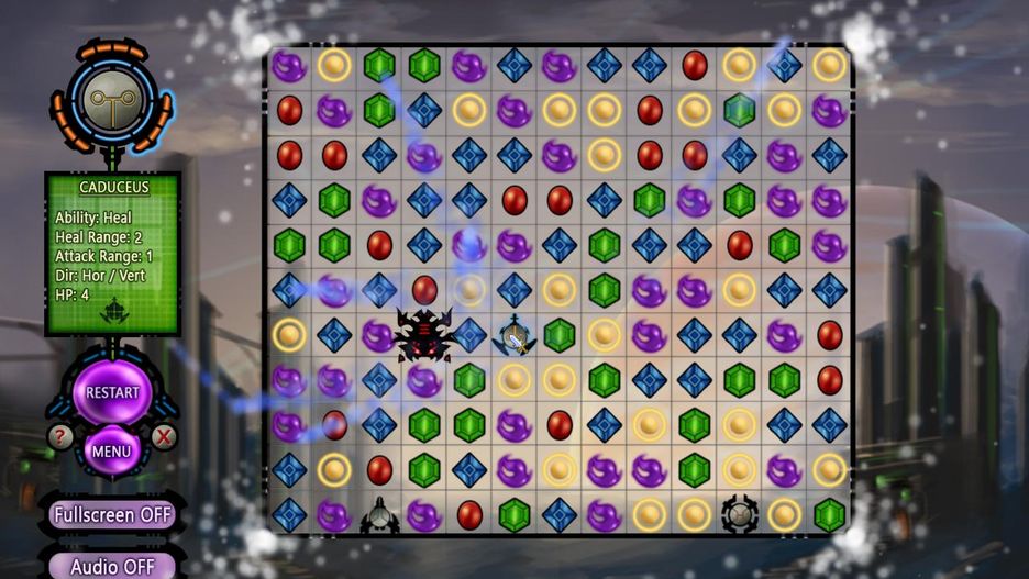 Łamigłówka wyłamuje się jednak spoza głównych reguł przyjętych i stosowanych w innych grach z tego gatunku, ale to właśnie to jest w niej najbardziej ciekawe. Poprzez wplecenie do gry wątku kosmicznej strzelaniny cały proces budowania, a następnie eliminowania kolorowych ciągów przedmiotów będzie służył zupełnie czemu innemu i odbywał się w nieco inny sposób, a dodatkowo na nieco odmiennych zasadach niż działo się to dotychczas.