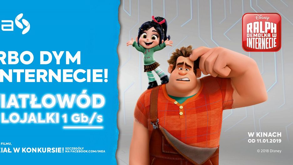 11 stycznia na ekrany polskich kin trafi kontynuacja przygód Ralpha Demolki. Tym razem głównybohater trafi do świata Internetu. Z tej okazji INEA przygotowała dla nowych klientów specjalną ofertę– światłowód symetryczny 1 Gb/s bez przywiązania w nowej, atrakcyjnej cenie.Akcja filmu „Ralph Demolka w Internecie” przenosi się z salonu gier do przepastnego i dynamicznierozwijającego się świata Internetu. Ralph ze swoją przyjaciółką Wandelopą Von Cuks wyrusza na tułaczkępo sieci w poszukiwaniu pewnej części zamiennej, niezbędnej by ocalić grę Wandelopy.Z okazji premiery filmu dla wszystkich, którzy dołączą do grona klientów INEA, operator przygotowałspecjalną ofertę – światłowód symetryczny 1 Gb/s bez lojalki. Promocja obowiązuje od 17 grudnia wewszystkich kanałach sprzedaży INEA.Ralph Demolka to postać uwielbiana nie tylko przez najmłodszych, a skoro robi demolkę w sieci to niemogliśmy się do tego nie odnieść. Za nami rok, w którym INEA nie raz zrobiła pozytywne zamieszaniew Internecie: uruchomiliśmy 10 Gb/s i łącze symetryczne dla naszych klientów – komentuje MichałBartkowiak, Chief Operating Officer INEA.Akcji towarzyszy kampania marketingowa obejmująca radio, telewizję, działania online oraz nośnikioutdoorowe w wybranych miastach Wielkopolski. Na wszystkich kreacjach przygotowanych przez INEApojawia się postać animowanego bohatera filmu. Operator przygotował dla swoich klientów także konkurs,którego szczegóły podane zostaną w mediach społecznościowych INEA.[wppl=2027248]