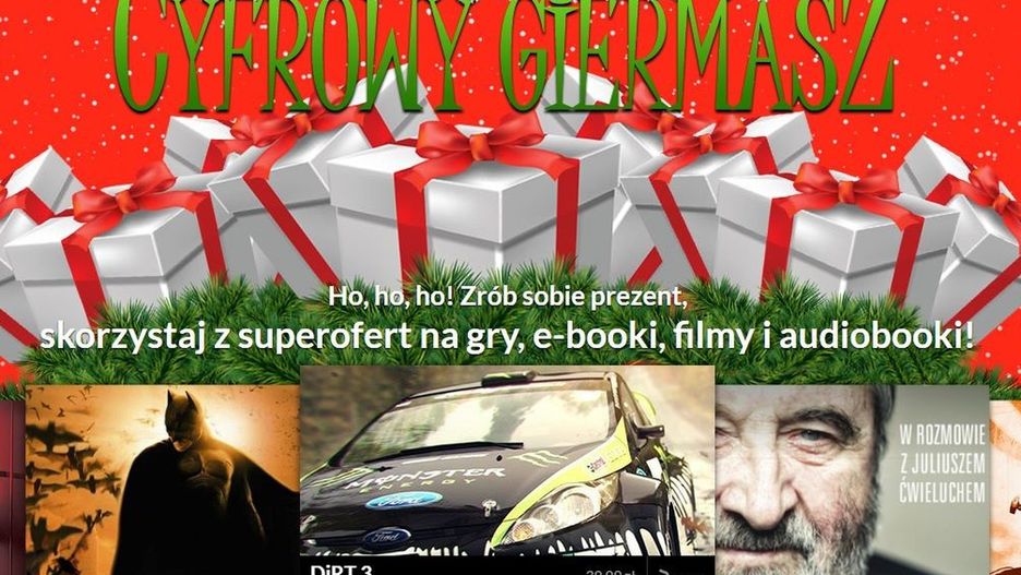 Świąteczna edycja Cyfrowego Giermaszu to świetna okazja aby kupić gry, e-booki, audiobooki oraz filmy w atrakcyjnych cenach. Cena wielu produktów została znacząco obniżona, co wielu osobom pozwoli na uzupełnienie własnej kolekcji w tytuły, które wcześniej były za drogie. Natomiast jeśli zrobimy zakupy za co najmniej 39,99 zł, to w prezencie otrzymamy audiokomiksy, więc naprawdę warto skorzystać z przygotowanej przez CDP.pl oferty.