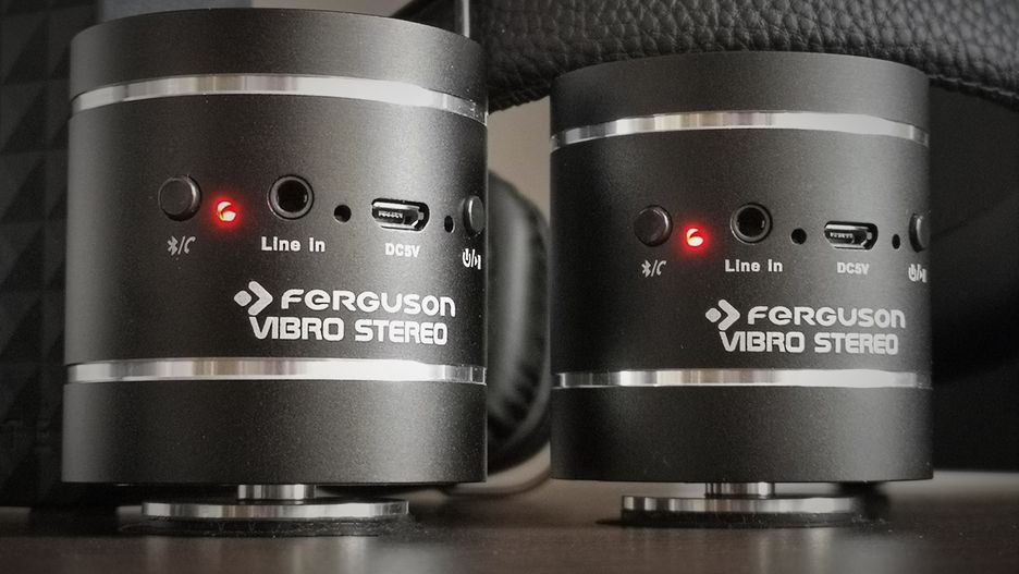 Głośników bezprzewodowych oraz przewodowych do smartfonów i innych urządzeń mobilnych ci u nas dostatek. Wybór możemy warunkować pod kątem wielkości, mnogości możliwości połączenia ze źródłem dźwięku, dodatkowych funkcji, odporności na warunki zewnętrzne itp. Ale niewiele jest na rynku urządzeń, które potrafią zaskoczyć swoim działaniem i do poprawnego funkcjonowania wymagają niemal dowolnej płaskiej powierzchni. Oto głośniki wibracyjne Ferguson Vibro Stereo.