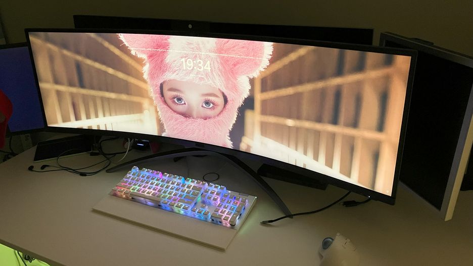 Zacznijmy od spojrzenia ze "zwyczajnej" perspektywy. Jest to monitor w proporcji 32:9, a więc w rozmiarze dwóch monitorów panoramicznych. Montaż takiego sprzętu to robota dla dwóch osób lub chwile stresu, ma on bowiem 120 centymetrów szerokości. Zakrzywiony ekran wymaga przyzwyczajenia i siedzenia pośrodku, bo inaczej końce ekranu będą się wydawać wręcz zbyt zakrzywione. Początkowe ustawienia w Windows dla HDR i trybu nocnego są niemal na pewno nieadekwatne, co udało się uchwycić także na fotografii.